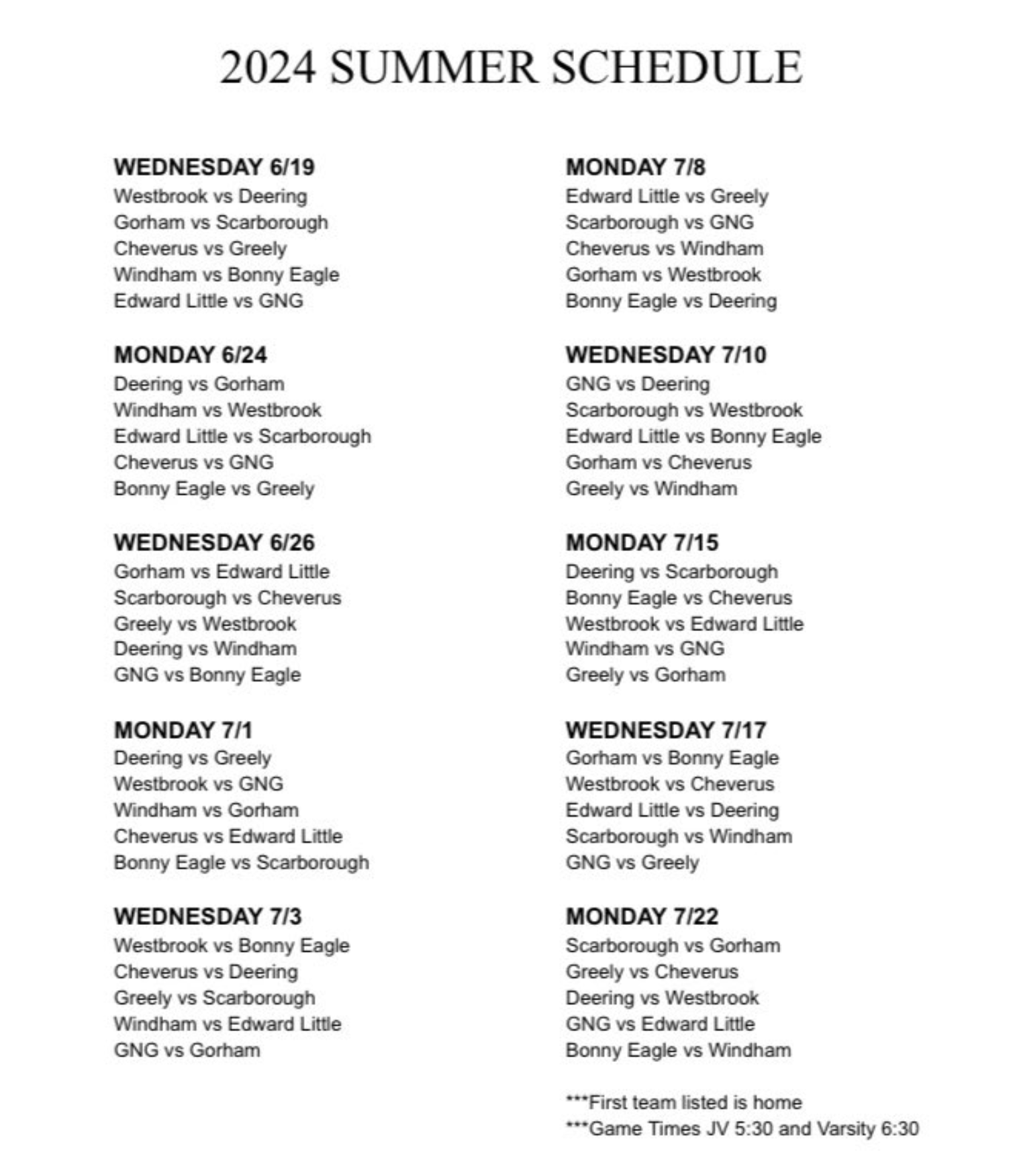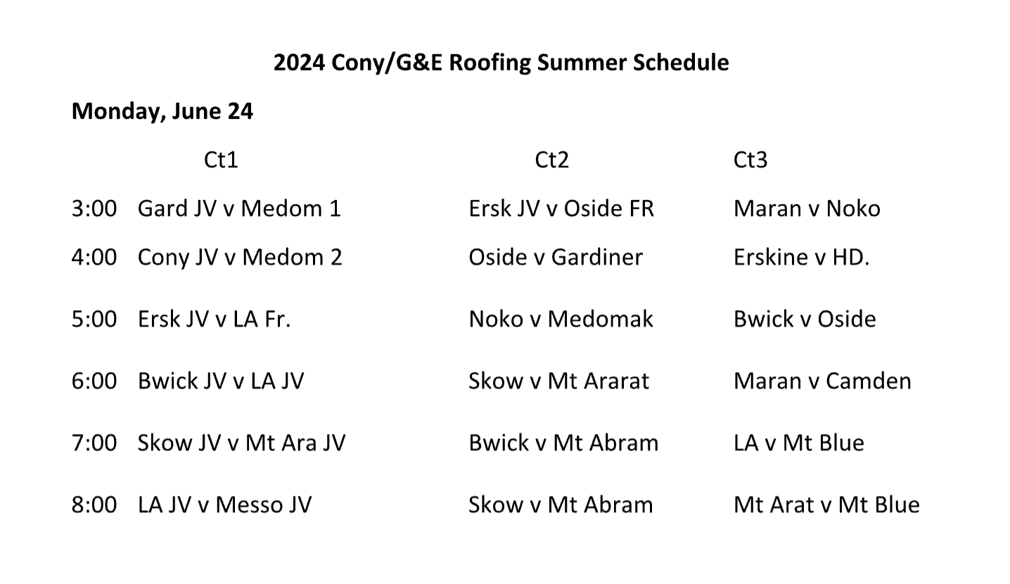 Further south, the Cony/G&E Roofing Summer League kicks off today at 3pm.