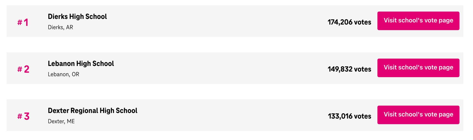 Don't forget to vote for Dexter in the T-Mobile Friday Night 5G Lights contest. They're in third place, which means we're still losing to Arkansas. Arkansas.