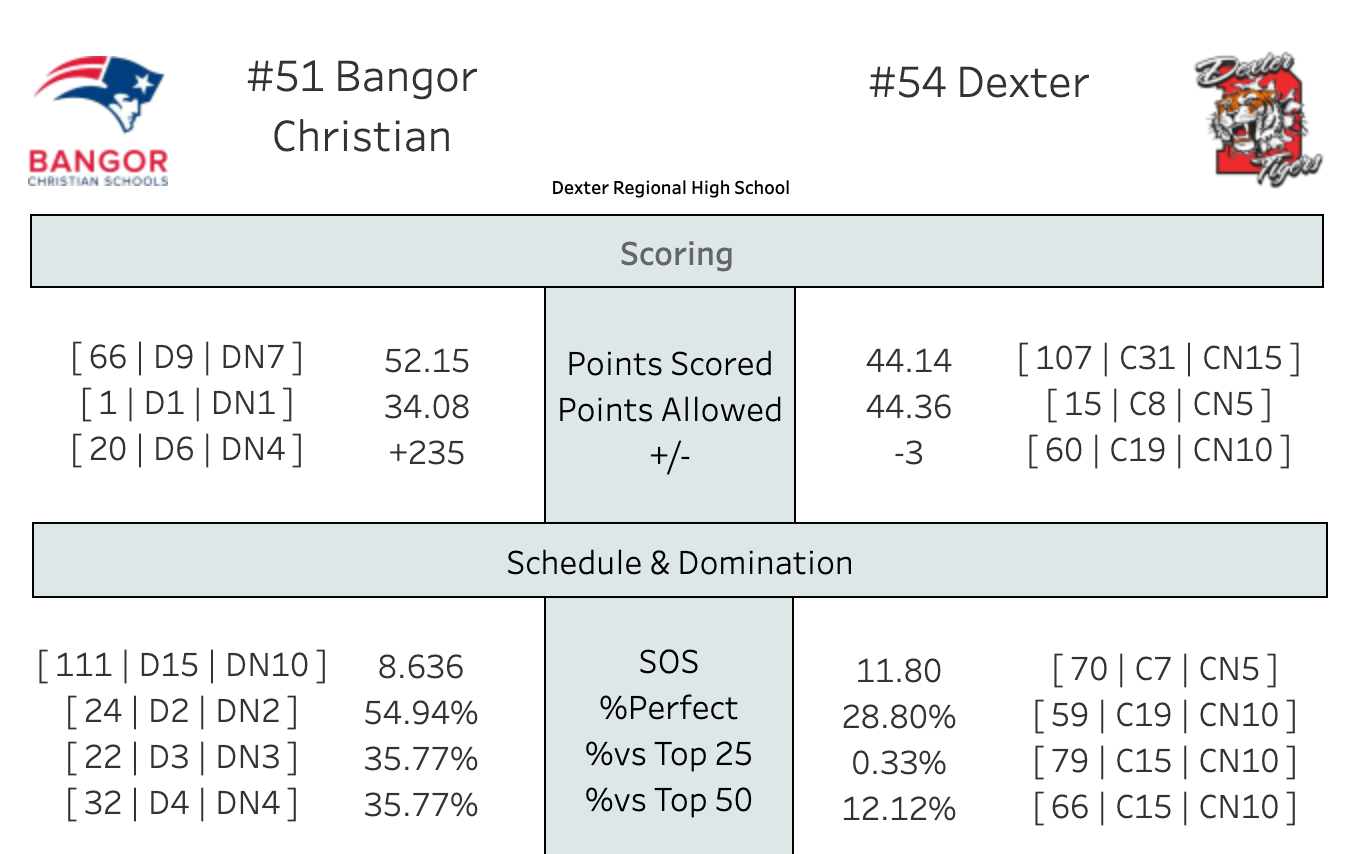 Bangor Christian as the top scoring defense in the state. Dexter has the 15th best scoring defense.