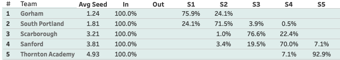 To summarize AA North, the top 3 seeds (Cheverus, Bangor, Oxford Hills) are surging. All are on 3+ game win streaks. For 4 and 5, not so much. Lewiston and Edward Little are on 3+ game losing streaks. It's sort of becoming a 3 team race like the boys side has been all year.