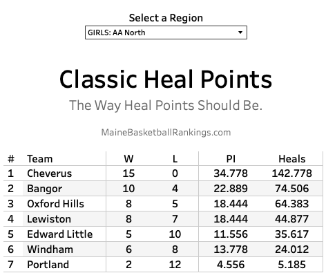 Portland picked up 30.11 heal points in the win, which simply pulls them further ahead of 4th place Lewiston in the North. They've got a shot at the 2 seed if they take care of business at home vs Lewiston (5-10) and Bangor (1-13) before they travel to Cheverus for their final game of the regular season.
