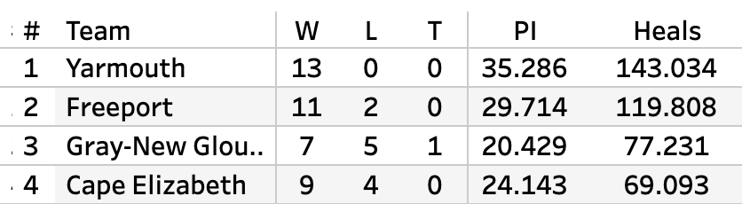 They're both top 10 in scoring offense and scoring defense and 4th (Freeport) and 6th (Yarmouth) in differential.