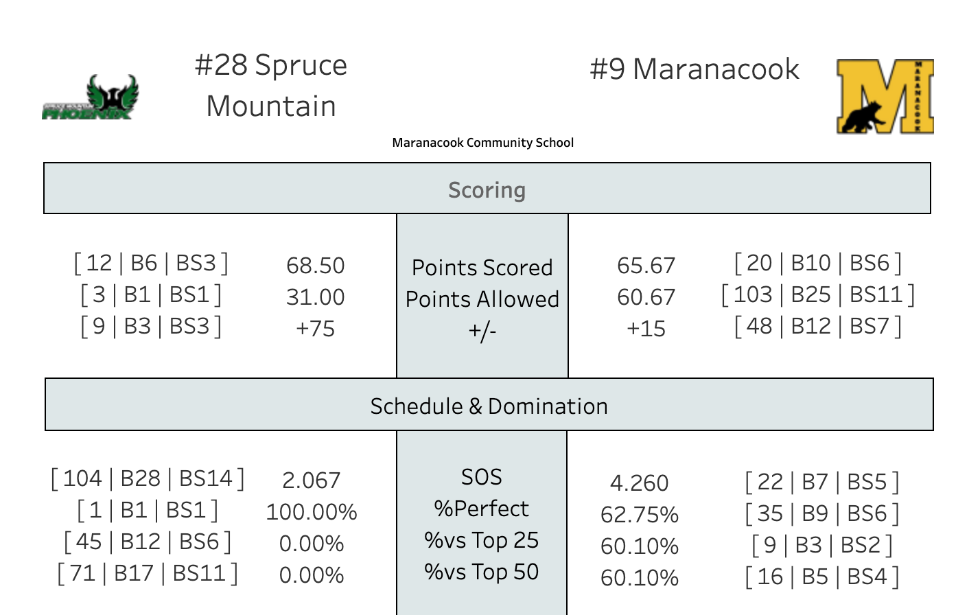 When last we saw Maranacook--newest members of B North--they were playing a thriller against C South's Mount Abram. Tonight, they're back in their old stomping grounds of B South, hosting Jace Bessey and the Spruce Mountain Phoenix. Bessey, of course, is one of the more electric scorers in the state and is coming off a school record 44 points (in 23 minutes) in the opener. But Maranacook has their own scorer in Keagan McClure, younger brother of Mr. Basketball.