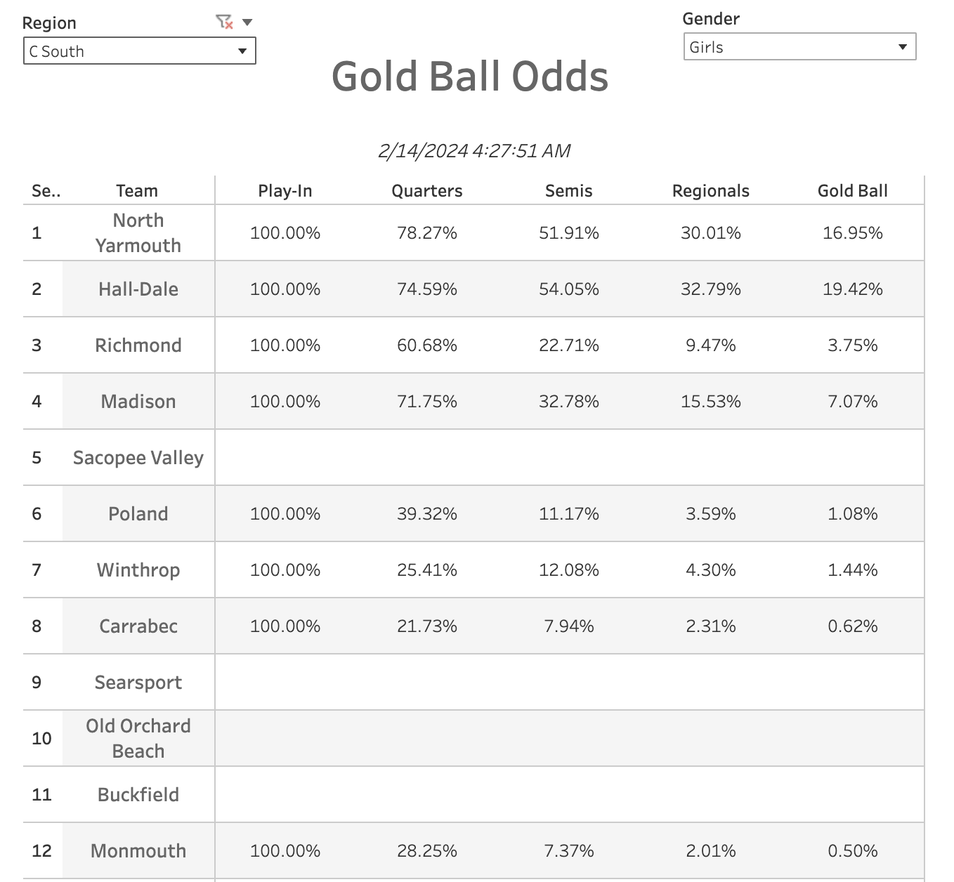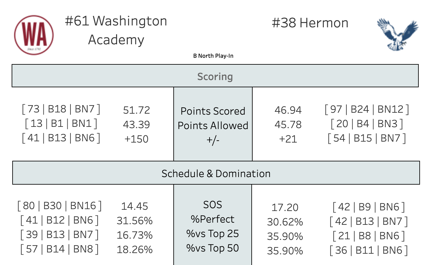 Washington Academy stumbled into the tournament, losing four of their final 5 (including a loss to 2-16 John Bapst) to fall to the 11 seed.