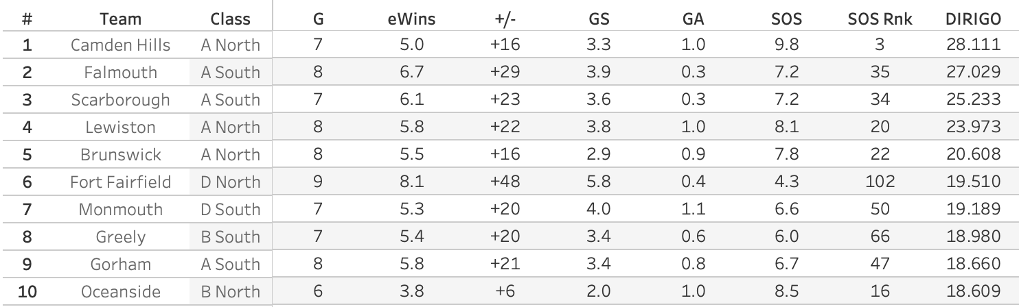Rankings are updated for soccer and field hockey. I'm sure I'm missing games as I try to get the hang of this new MPA website and figure out how to find the reported scores.