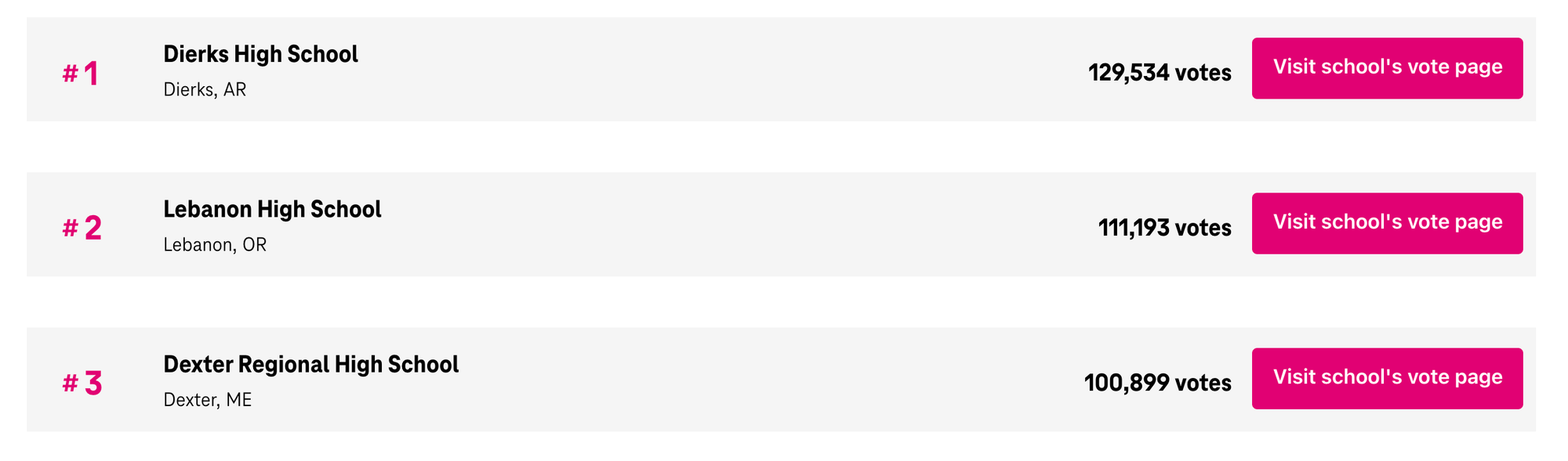 All they need is for you--and all of Maine--to vote. It's free! You can vote once a day and while it might look like these people from Arkansas are running away with it, we can absolutely close that gap. To put it in perspective, there's 3 schools with fewer than 10K votes.