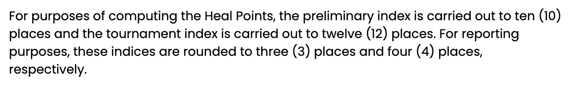 Back in the olden times, the Heal Points were calculated by hand, much like my first fantasy baseball league. Back in those dark days, we had to wait for the standings to come in the mail before we knew whether or not we won. It sucked. But that's where I taught myself Excel, because I had to know. Anyway, if you're doing it by hand, you obviously can't take this out to infinite decimal places. There's a limit in what you can ask a person to do. Also: imagine doing heal points by hand for 130 schools. Yikes.
