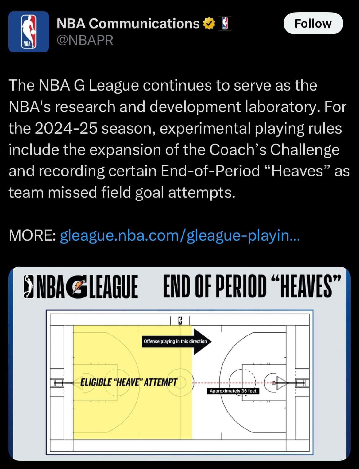 The NBA is testing out a rule chance in the G League.