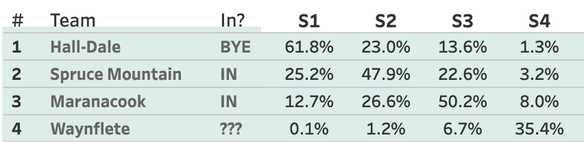 If you're wondering, 43 teams in the state have locked up a bye.