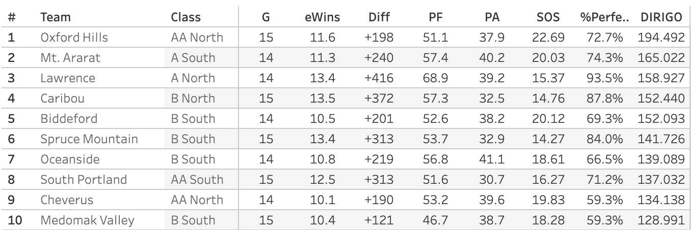The Madawaska boys are undefeated, but still the 4 seed in C North because they've played arguably the easiest schedule in the state. But they've also got the best point differential in the state. They're only 47th because the schedule is so bad.