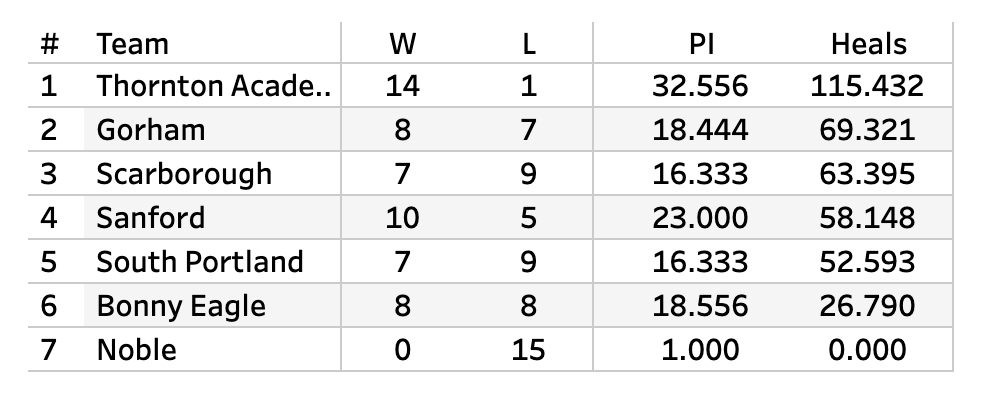 The difference between 2 and 3 is pretty important. The 2 seed gets winless Noble. The 3 seed gets 8-8 Bonny Eagle. Gorham's going to need to get either this one or South Portland and hope Sanford doesn't run the table.